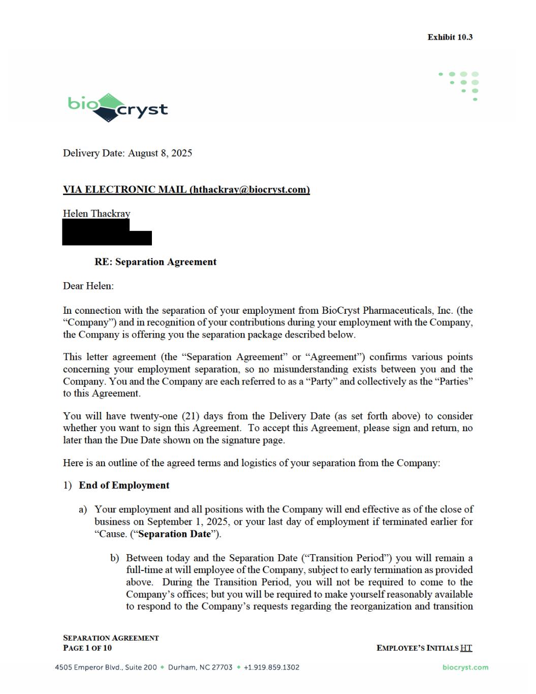 | BIOCRYST PHARMACEUTICALS, INC. |