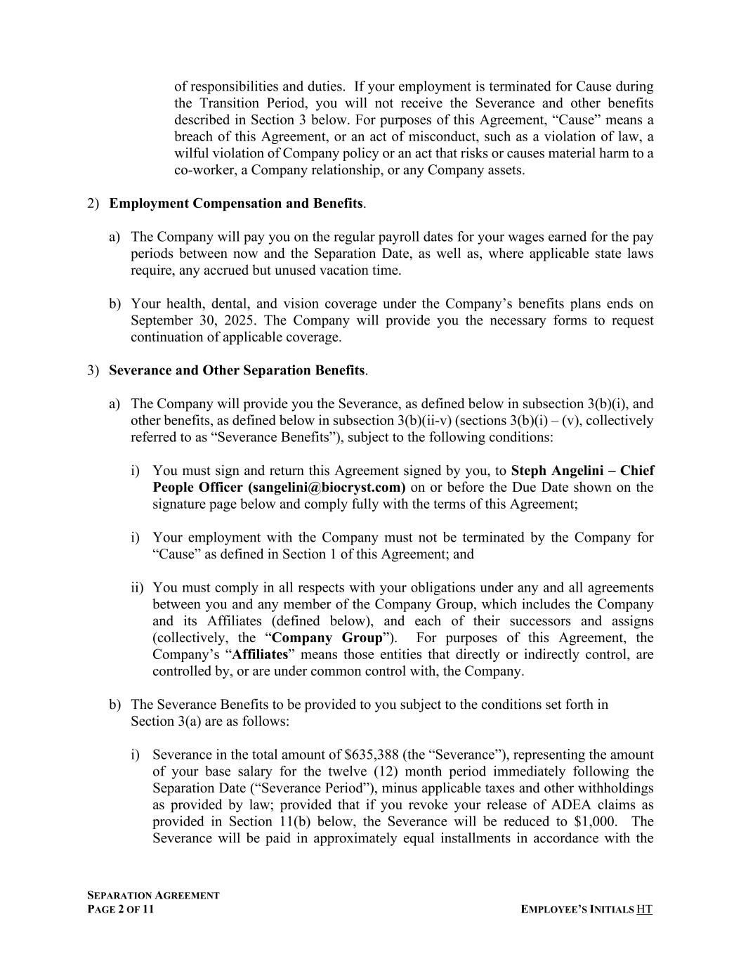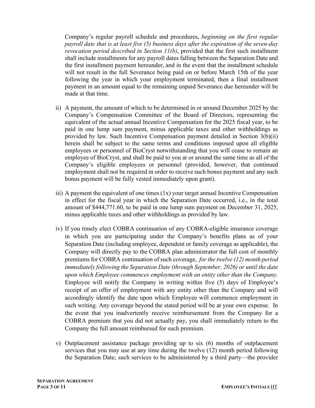 bcrx-202509300000882796--12-312025Q3falsehttp://fasb.org/us-gaap/2025#ShortTermInvestmentshttp://fasb.org/us-gaap/2025#ShortTermInvestmentsP3Y0M0Dhttp://www.biocryst.com/20250930#RightOfUseAssetsNoncurrenthttp://www.biocryst.com/20250930#RightOfUseAssetsNoncurrenthttp://www.biocryst.com/20250930#RightOfUseAssetsNoncurrenthttp://www.biocryst.com/20250930#RightOfUseAssetsNoncurrent139xbrli:sharesiso4217:USDiso4217:USDxbrli:sharesbcrx:segmentxbrli:purebcrx:securitybcrx:planbcrx:dosebcrx:periodbcrx:payment00008827962025-01-012025-09-3000008827962025-10-3100008827962025-09-3000008827962024-12-310000882796us-gaap:DisposalGroupHeldforsaleNotDiscontinuedOperationsMember2025-09-300000882796us-gaap:DisposalGroupHeldforsaleNotDiscontinuedOperationsMember2024-12-3100008827962025-07-012025-09-3000008827962024-07-012024-09-3000008827962024-01-012024-09-3000008827962023-12-3100008827962024-09-300000882796us-gaap:CommonStockMember2024-12-310000882796us-gaap:AdditionalPaidInCapitalMember2024-12-310000882796us-gaap:AccumulatedOtherComprehensiveIncomeMember2024-12-310000882796us-gaap:RetainedEarningsMember2024-12-310000882796us-gaap:RetainedEarningsMember2025-01-012025-03-3100008827962025-01-012025-03-310000882796us-gaap:AccumulatedOtherComprehensiveIncomeMember2025-01-012025-03-310000882796us-gaap:CommonStockMember2025-01-012025-03-310000882796us-gaap:AdditionalPaidInCapitalMember2025-01-012025-03-310000882796us-gaap:CommonStockMember2025-03-310000882796us-gaap:AdditionalPaidInCapitalMember2025-03-310000882796us-gaap:AccumulatedOtherComprehensiveIncomeMember2025-03-310000882796us-gaap:RetainedEarningsMember2025-03-3100008827962025-03-310000882796us-gaap:RetainedEarningsMember2025-04-012025-06-3000008827962025-04-012025-06-300000882796us-gaap:AccumulatedOtherComprehensiveIncomeMember2025-04-012025-06-300000882796us-gaap:CommonStockMember2025-04-012025-06-300000882796us-gaap:AdditionalPaidInCapitalMember2025-04-012025-06-300000882796us-gaap:CommonStockMember2025-06-300000882796us-gaap:AdditionalPaidInCapitalMember2025-06-300000882796us-gaap:AccumulatedOtherComprehensiveIncomeMember2025-06-300000882796us-gaap:RetainedEarningsMember2025-06-3000008827962025-06-300000882796us-gaap:RetainedEarningsMember2025-07-012025-09-300000882796us-gaap:AccumulatedOtherComprehensiveIncomeMember2025-07-012025-09-300000882796us-gaap:CommonStockMember2025-07-012025-09-300000882796us-gaap:AdditionalPaidInCapitalMember2025-07-012025-09-300000882796us-gaap:CommonStockMember2025-09-300000882796us-gaap:AdditionalPaidInCapitalMember2025-09-300000882796us-gaap:AccumulatedOtherComprehensiveIncomeMember2025-09-300000882796us-gaap:RetainedEarningsMember2025-09-300000882796us-gaap:CommonStockMember2023-12-310000882796us-gaap:AdditionalPaidInCapitalMember2023-12-310000882796us-gaap:AccumulatedOtherComprehensiveIncomeMember2023-12-310000882796us-gaap:RetainedEarningsMember2023-12-310000882796us-gaap:RetainedEarningsMember2024-01-012024-03-3100008827962024-01-012024-03-310000882796us-gaap:AccumulatedOtherComprehensiveIncomeMember2024-01-012024-03-310000882796us-gaap:CommonStockMember2024-01-012024-03-310000882796us-gaap:AdditionalPaidInCapitalMember2024-01-012024-03-310000882796us-gaap:CommonStockMember2024-03-310000882796us-gaap:AdditionalPaidInCapitalMember2024-03-310000882796us-gaap:AccumulatedOtherComprehensiveIncomeMember2024-03-310000882796us-gaap:RetainedEarningsMember2024-03-3100008827962024-03-310000882796us-gaap:RetainedEarningsMember2024-04-012024-06-3000008827962024-04-012024-06-300000882796us-gaap:AccumulatedOtherComprehensiveIncomeMember2024-04-012024-06-300000882796us-gaap:CommonStockMember2024-04-012024-06-300000882796us-gaap:AdditionalPaidInCapitalMember2024-04-012024-06-300000882796us-gaap:CommonStockMember2024-06-300000882796us-gaap:AdditionalPaidInCapitalMember2024-06-300000882796us-gaap:AccumulatedOtherComprehensiveIncomeMember2024-06-300000882796us-gaap:RetainedEarningsMember2024-06-3000008827962024-06-300000882796us-gaap:RetainedEarningsMember2024-07-012024-09-300000882796us-gaap:AccumulatedOtherComprehensiveIncomeMember2024-07-012024-09-300000882796us-gaap:CommonStockMember2024-07-012024-09-300000882796us-gaap:AdditionalPaidInCapitalMember2024-07-012024-09-300000882796us-gaap:CommonStockMember2024-09-300000882796us-gaap:AdditionalPaidInCapitalMember2024-09-300000882796us-gaap:AccumulatedOtherComprehensiveIncomeMember2024-09-300000882796us-gaap:RetainedEarningsMember2024-09-300000882796us-gaap:ProductMember2025-07-012025-09-300000882796us-gaap:ProductMember2024-07-012024-09-300000882796us-gaap:ProductMember2025-01-012025-09-300000882796us-gaap:ProductMember2024-01-012024-09-300000882796bcrx:CollaborativeAndOtherResearchAndDevelopmentMember2025-07-012025-09-300000882796bcrx:CollaborativeAndOtherResearchAndDevelopmentMember2024-07-012024-09-300000882796bcrx:CollaborativeAndOtherResearchAndDevelopmentMember2025-01-012025-09-300000882796bcrx:CollaborativeAndOtherResearchAndDevelopmentMember2024-01-012024-09-300000882796bcrx:CollateralForCreditMember2025-09-300000882796bcrx:CollateralForCreditMember2024-12-310000882796srt:MaximumMember2025-01-012025-09-300000882796us-gaap:ComputerEquipmentMember2025-09-300000882796bcrx:LaboratoryEquipmentOfficeEquipmentAndSoftwareMember2025-09-300000882796us-gaap:FurnitureAndFixturesMember2025-09-300000882796bcrx:ORLADEYOMemberus-gaap:ProductConcentrationRiskMemberus-gaap:SalesRevenueNetMember2025-07-012025-09-300000882796bcrx:ORLADEYOMemberus-gaap:ProductConcentrationRiskMemberus-gaap:SalesRevenueNetMember2025-01-012025-09-300000882796bcrx:ORLADEYOMemberus-gaap:ProductConcentrationRiskMemberus-gaap:SalesRevenueNetMember2024-07-012024-09-300000882796bcrx:ORLADEYOMemberus-gaap:ProductConcentrationRiskMemberus-gaap:SalesRevenueNetMember2024-01-012024-09-300000882796us-gaap:DisposalGroupHeldforsaleNotDiscontinuedOperationsMemberbcrx:BioCrystIrelandMembersrt:ScenarioForecastMember2025-10-010000882796us-gaap:DisposalGroupHeldforsaleNotDiscontinuedOperationsMemberbcrx:BioCrystIrelandMember2025-09