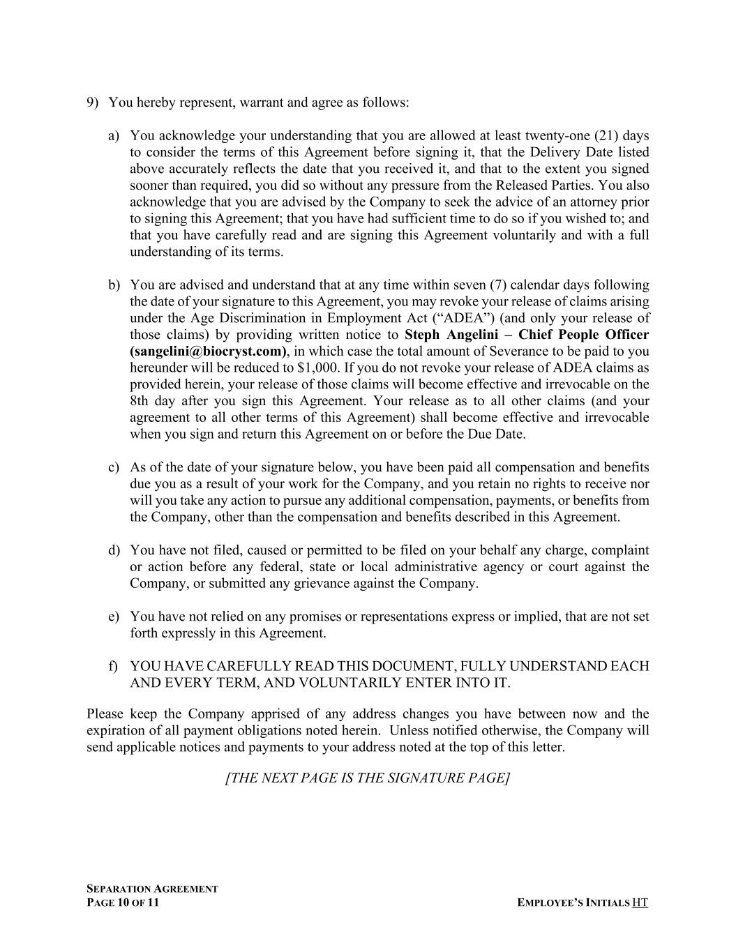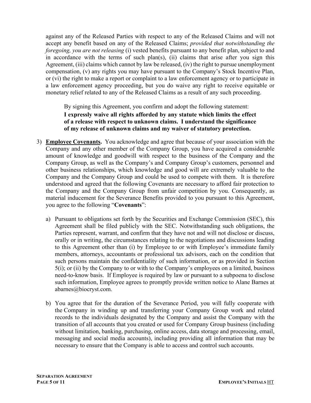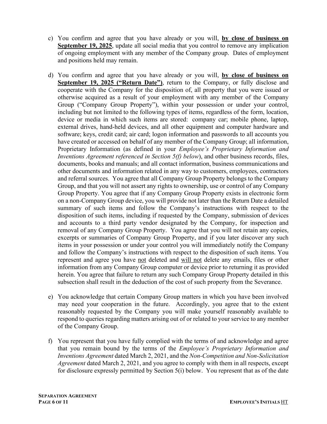 Alane P. Barnes, Chief Legal Officer and Secretary | | Modification | | August 13, 2025 | | Until December 20, 2027, or such earlier date upon which all transactions are completed or the plan is terminated | | (1) |