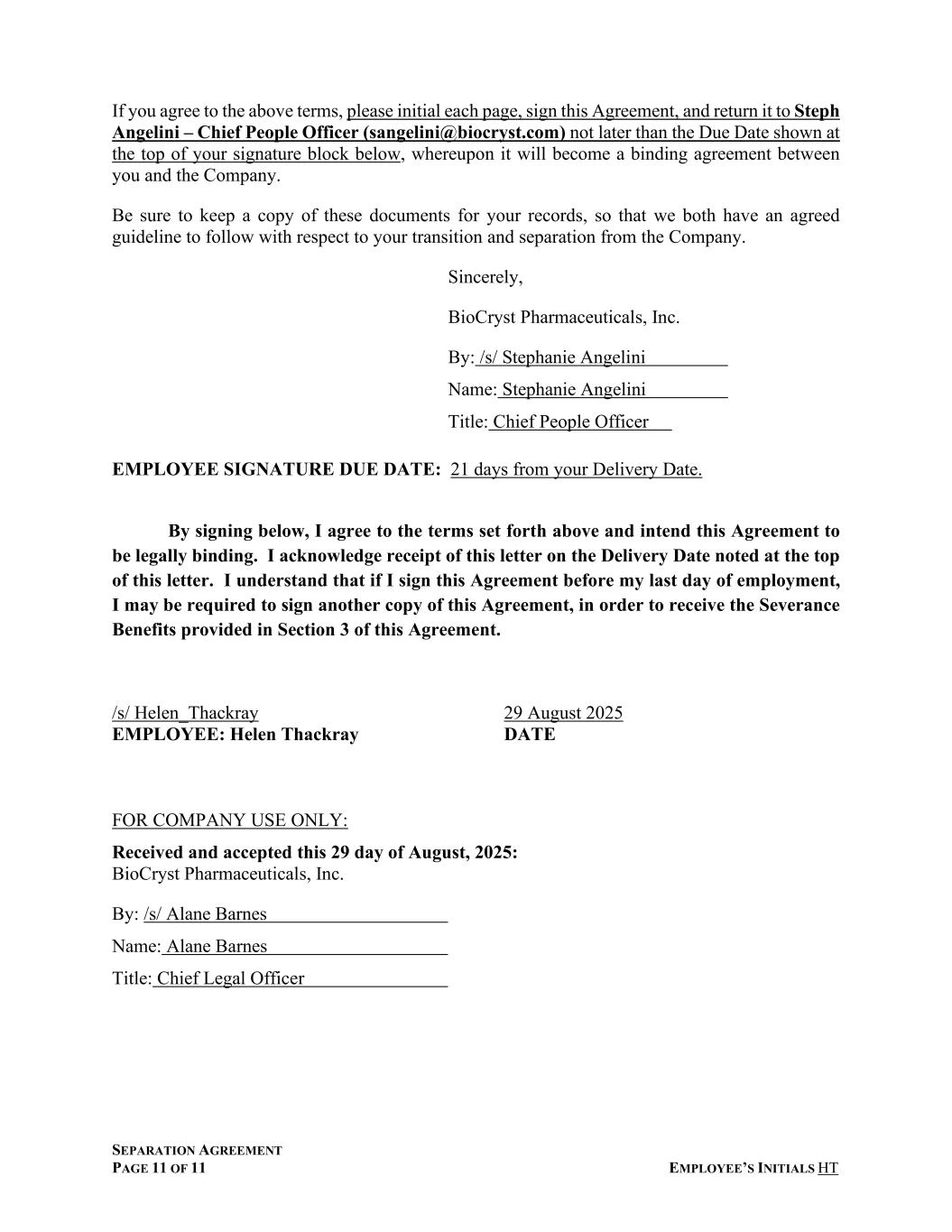 | (101) | Financial statements from the Quarterly Report on Form 10-Q of BioCryst Pharmaceuticals, Inc. for the three and nine months ended September 30, 2025, formatted in Inline XBRL: (i) Condensed Consolidated Balance Sheets, (ii) Condensed Consolidated Statements of Comprehensive Income (Loss), (iii) Condensed Consolidated Statements of Cash Flows, (iv) Condensed Consolidated Statements of Stockholders’ Deficit, and (v) Notes to Condensed Consolidated Financial Statements, tagged as blocks of text and including detailed tags. |